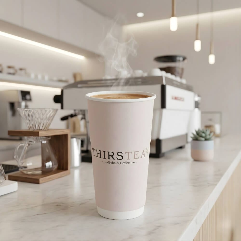 Designed for cafés and beverage businesses, these custom 20 oz double wall paper cups are built for extra-large drinks and high-volume service. They provide reliable insulation, durability, and strong brand presence without the need for sleeves.