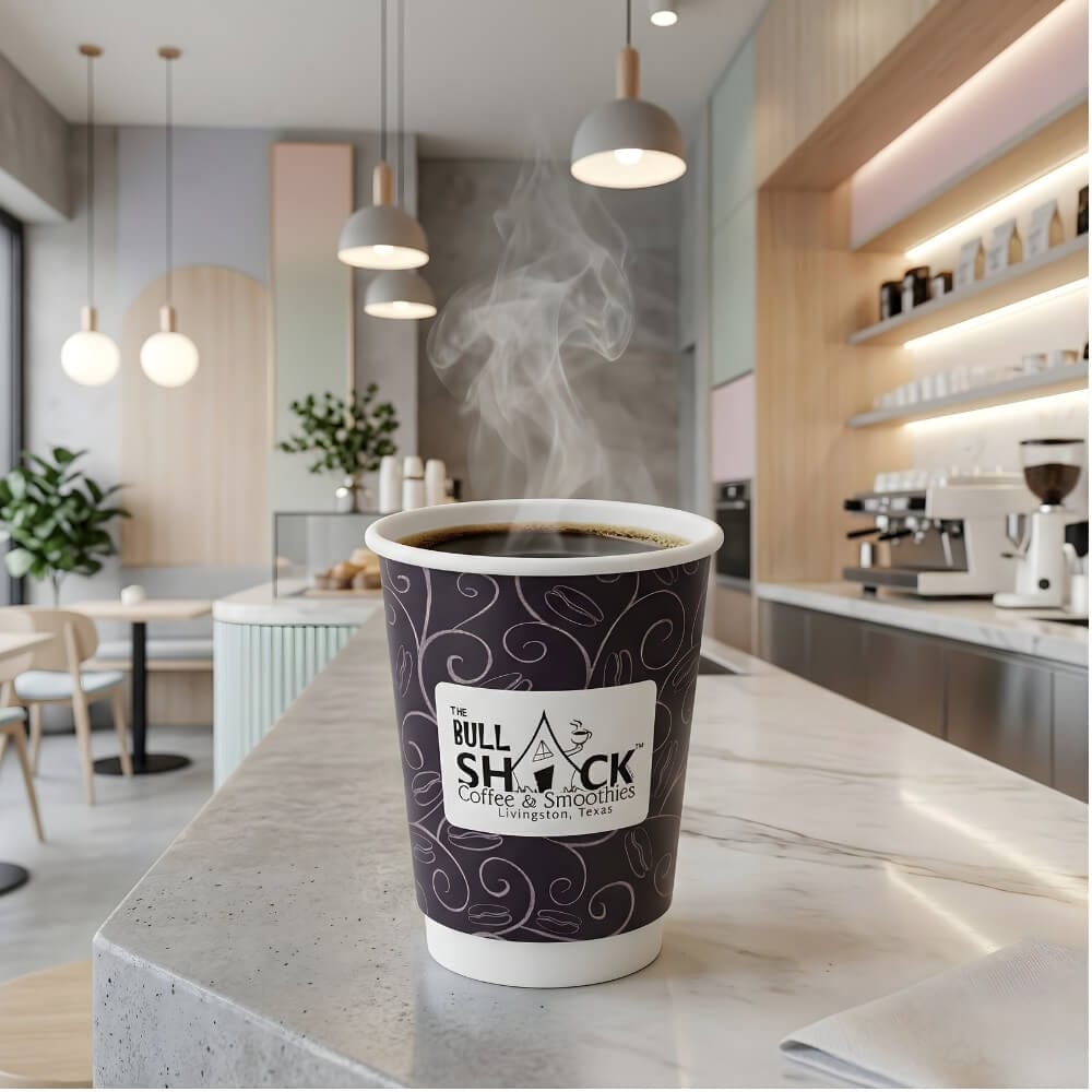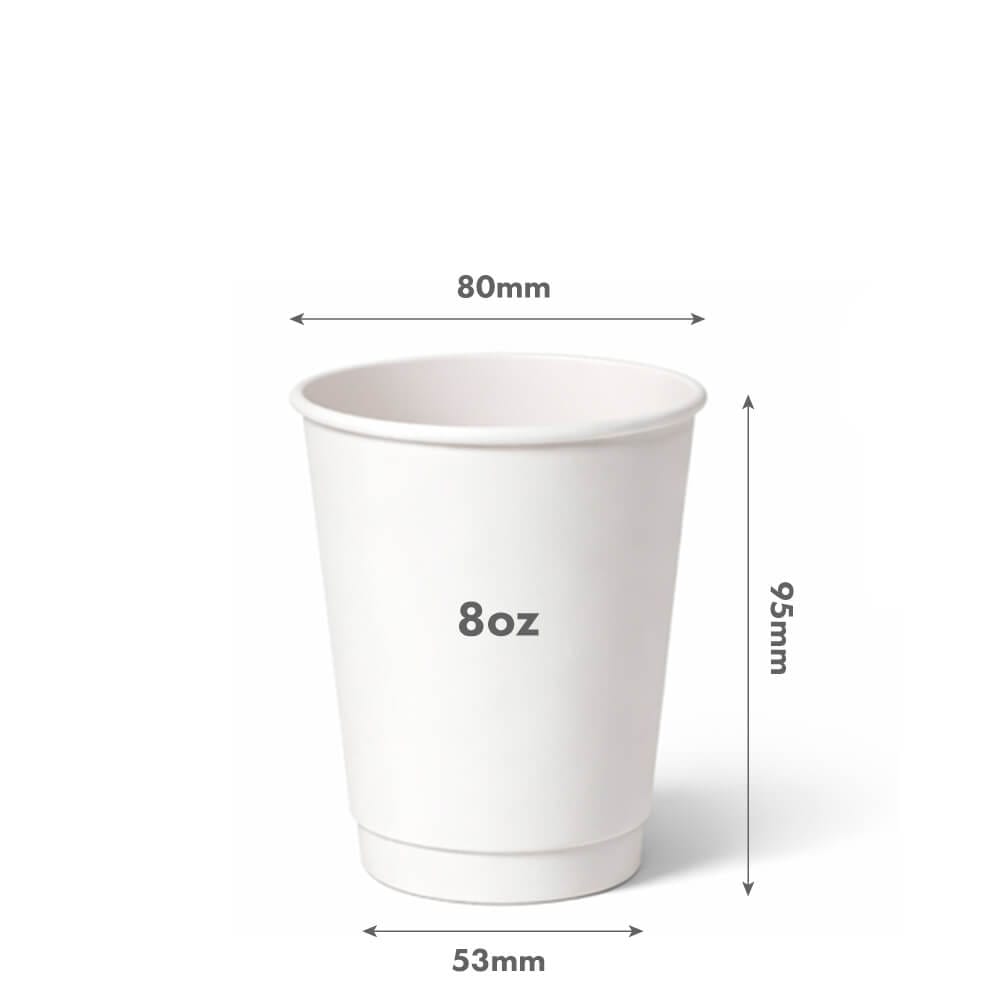 Our 8 oz double wall paper cups are made from durable, food-grade paperboard with an insulated double-layer construction designed to handle hot beverages comfortably and safely.